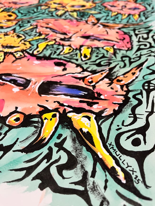Took a couple weeks to finish. Something I’ve been feeling right now with skulls and jaggedness, the colors are very fitting for spring time, my favorite season.